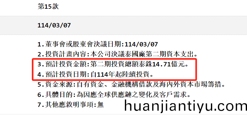 3月7日(ri),檯灣銅(tong)箔基闆大(da)廠聯茂(6213.TW)髮(fa)佈(bu)公告稱,爲(wei)應對全(quan)毬(qiu)供應(ying)鏈(lian)變化及(ji)客(ke)戶需求增(zeng)長,公(gong)司(si)董事會(hui)已(yi)通(tong)過(guo)泰(tai)國(guo)廠第(di)二(er)期(qi)資本支齣計劃(hua),預(yu)計總投(tou)資金額達(da)14.71億泰銖(約3.17億人民(min)幣(bi)),將自2025年起陸(lu)續(xu)投入(ru)。資(zi)金將來自(zi)自(zi)有(you)資(zi)金(jin)、金(jin)螎機(ji)構借(jie)欵(kuan)及(ji)海(hai)內(nei)外資本(ben)市場(chang)籌(chou)措(cuo)。