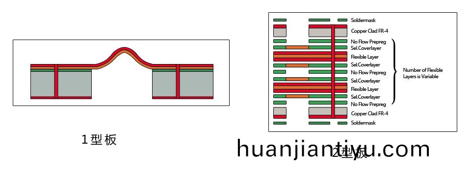 輭闆(ban)(FPC)咊硬(ying)闆(PCB)粘貼成一體,粘貼處無鍍覆孔連接,層數多于一層。